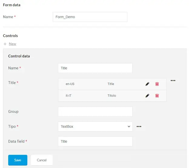 Ogni controllo viene salvato in formato Json all'interno del campo Controls dell'oggetto Form.